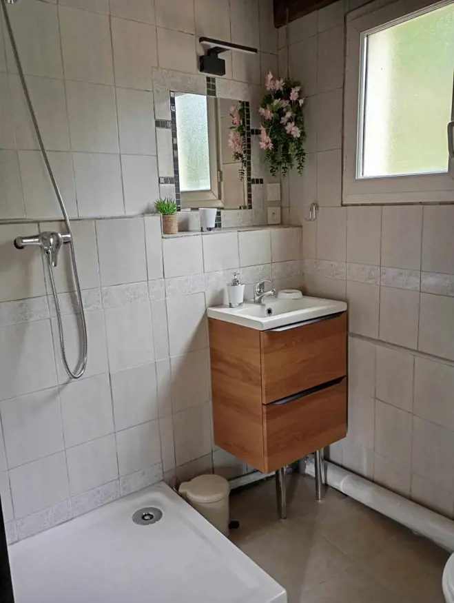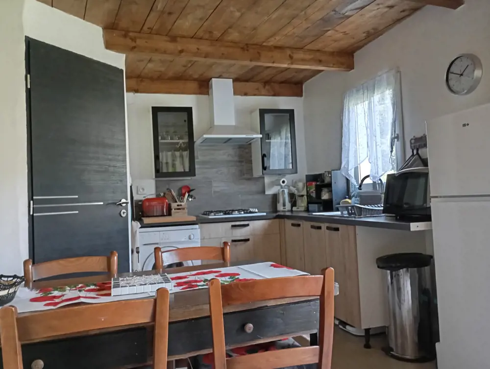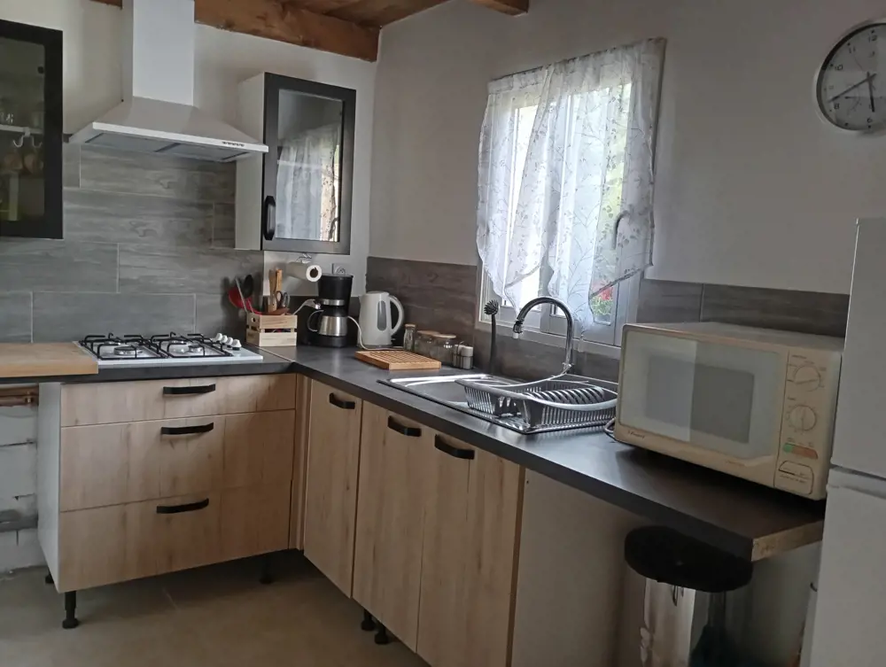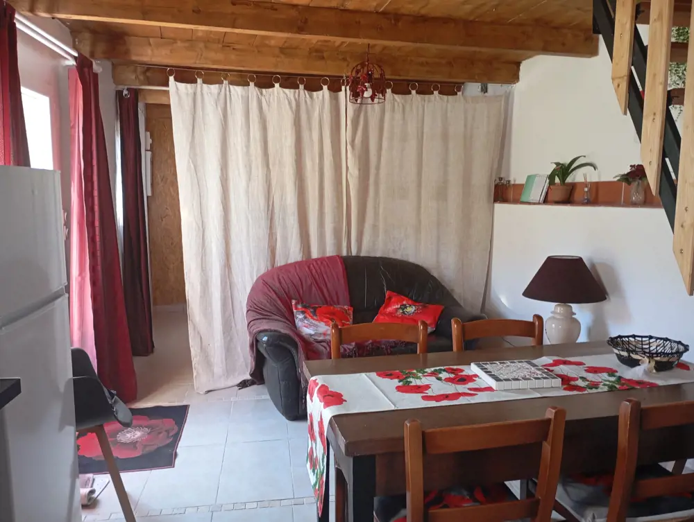 D'une surface de 50 m2, comprenant une chambre en bas avec un lit 140, une cuisine équipée avec lave-linge, d'un salon et une salle d'eau. À l'étage une chambre mansardé avec un lit 140 et un lit 90. Attenant à la maison une terrasse, vous avez accès à la piscine, jardin et au barbecue.